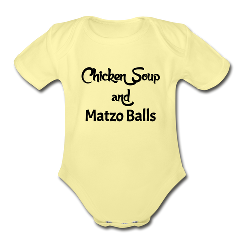 This baby bodysuit is printed with a perfect Jewish food combo.