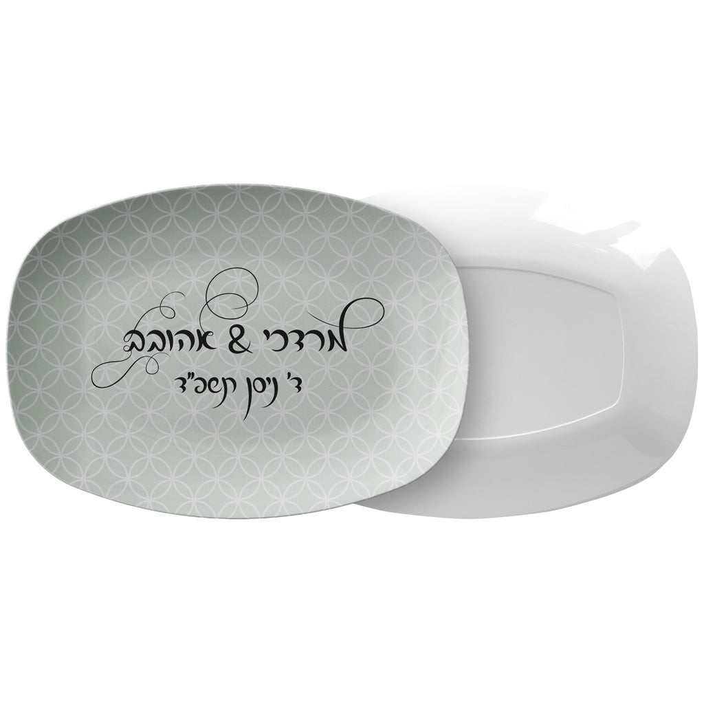 This durable dishwasher safe platter makes a great personalized gift, perfect for a Jewish Wedding. Personalized with groom's and kalla's name as well as a hebrew or english wedding date