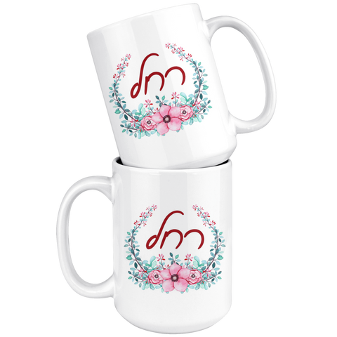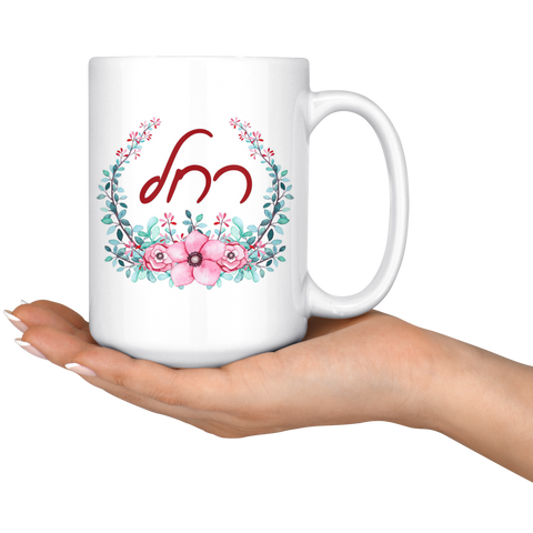 Any woman will enjoy sipping her tea or coffee in this beautiful floral mug printed with her Hebrew Name.