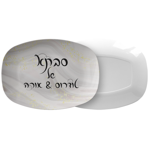 Marble look personalized platter with text of your choice in Hebrew (up to 3 lines)
