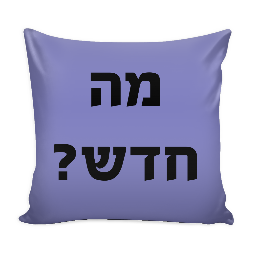 What's new - מה חדש? - Hebrew Print Decorative Pillow, Purple